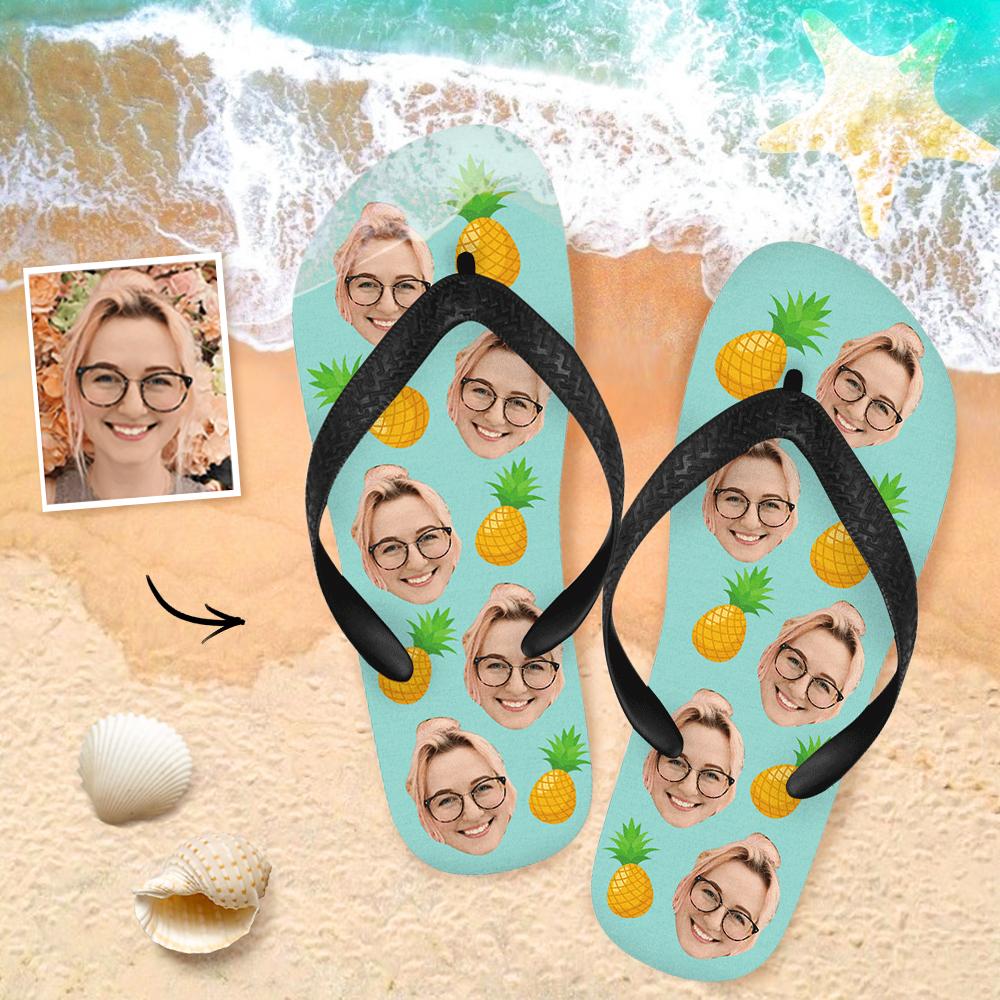 Custom Flip Flops Customized Photo, Personalized Flip Flops With Pineapple Photo Gift