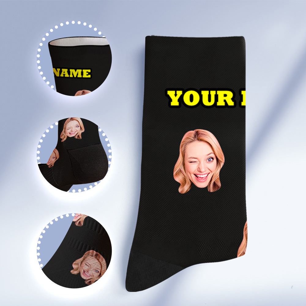 Custom Socks with Face Photo Gifts-Black