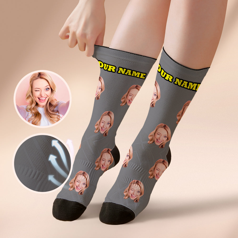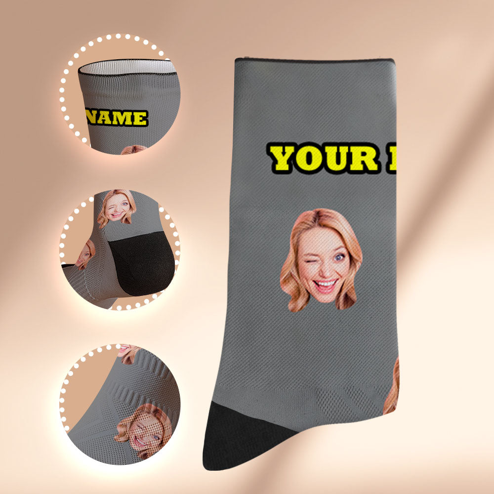 Custom Socks with Face Photo Gifts-Grey
