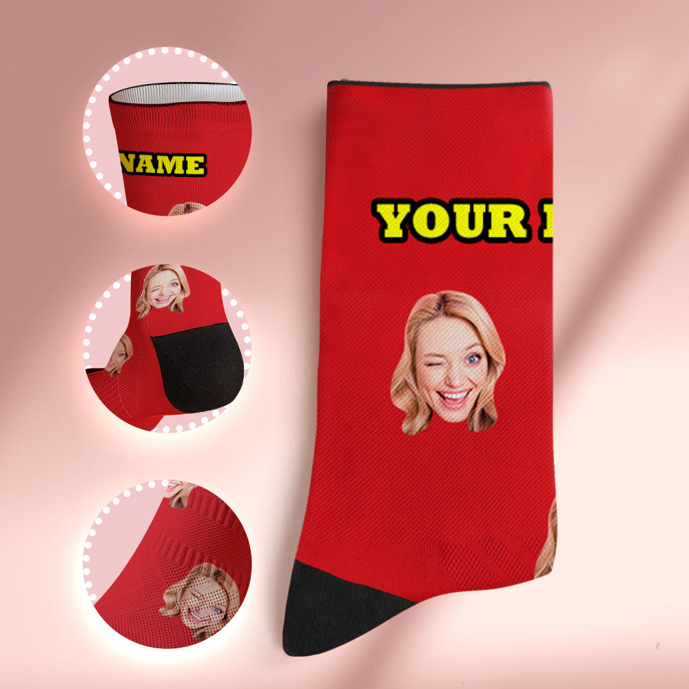Custom Socks with Face Photo Gifts-Red
