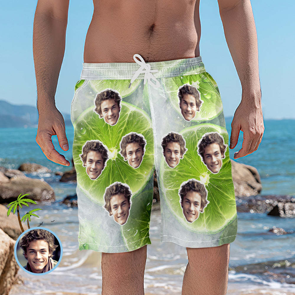 Custom Beach Short with Face Lemon Personalized Photo Swim Trunks for Men