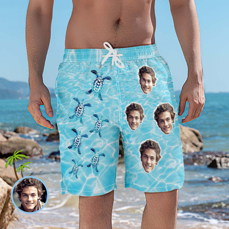 Custom Beach Short with Face Turtle Print Personalized Photo Swim Trunks for Men