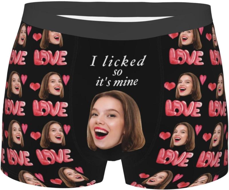 Custom Big Face Boxer Shorts Personalized Colorful Waistband Pink Boxer Briefs Red and Pink Hearts Gifts For Boyfriend