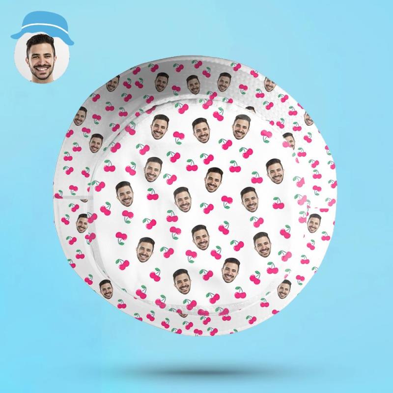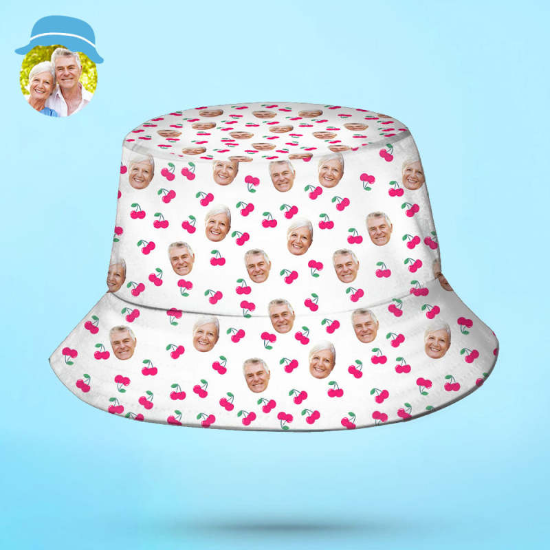 Custom Bucket Hat Unisex Face Bucket Hat Personalize Wide Brim Outdoor Summer Cap Cherry Grandparents' Day Gifts for Grandma