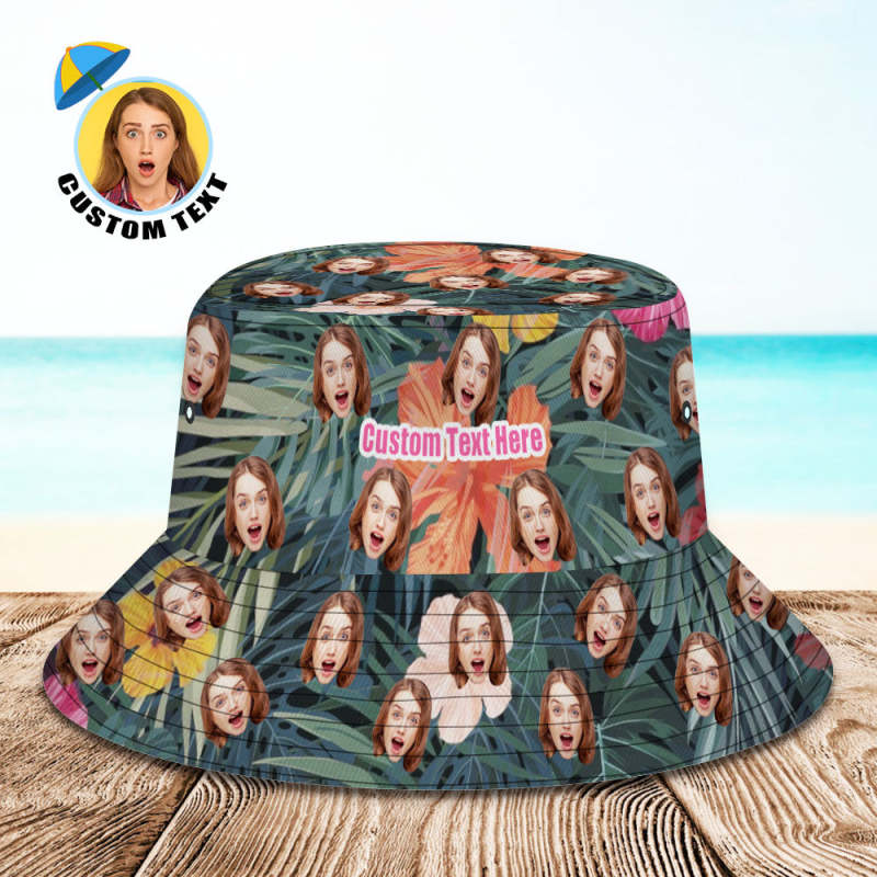 Custom Bucket Hat Unisex Face Bucket Hat Personalize Wide Brim Outdoor Summer Cap Hiking Beach Sports Hats Hawaiian Style Gift for Lover