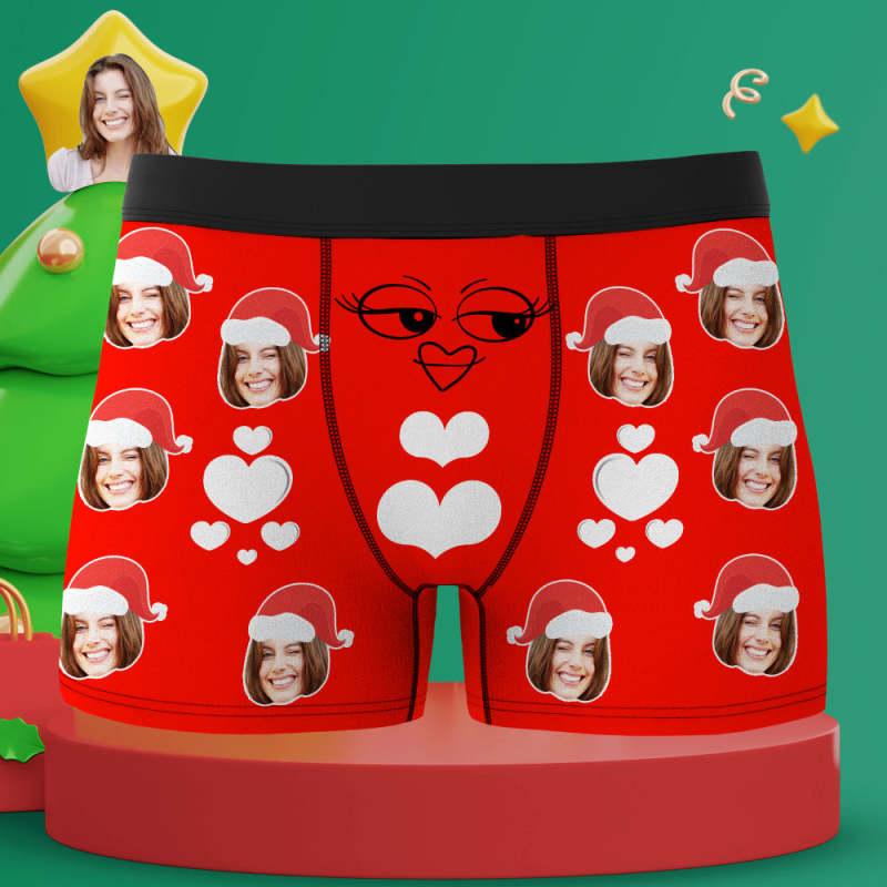Custom Christmas Boxer Santa Hat Boxer Personalized Mens Heart Underwear Santa Gift for Him