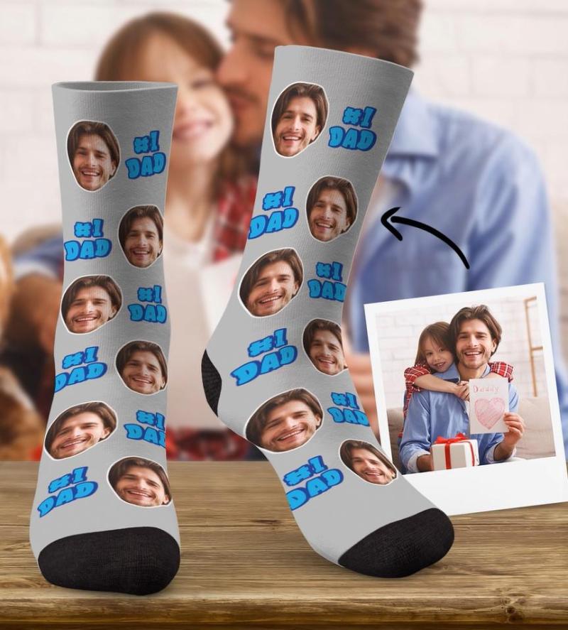 Custom Dad Face Sock Personalized Father's Day Gift - #1 DAD