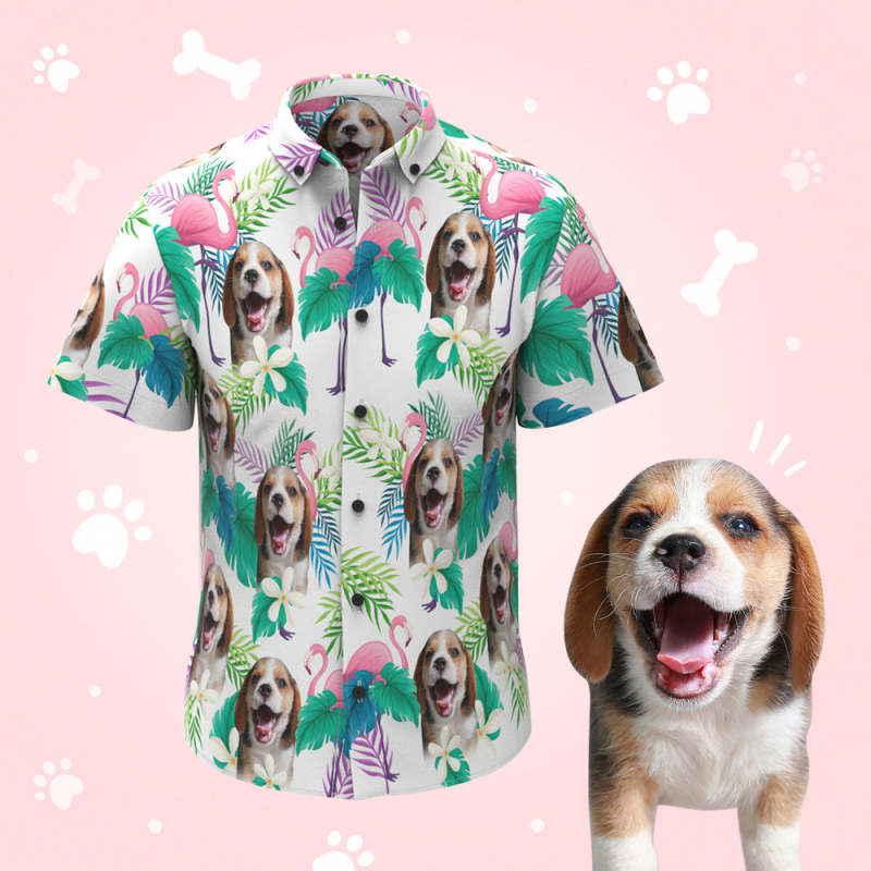 Custom Dag Face Men's Hawaiian Shirts with Flamingo for Pet Lover