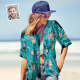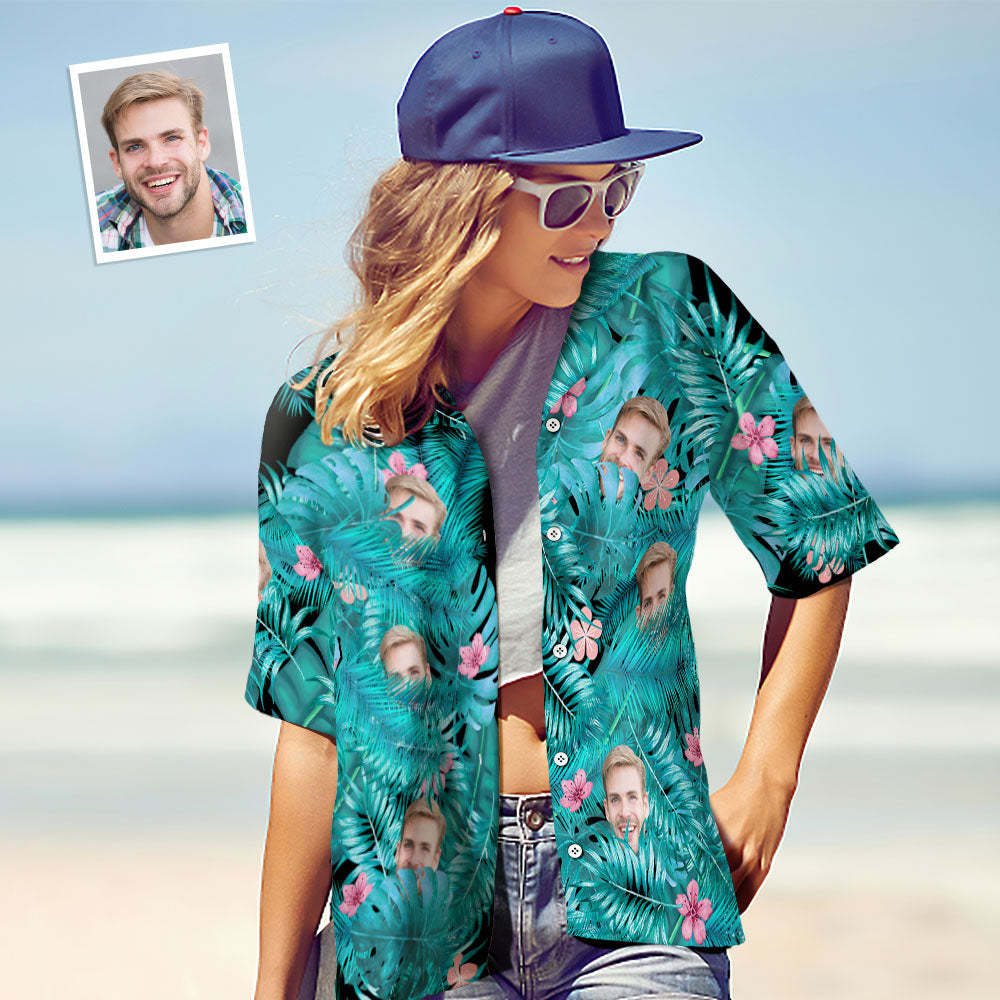 Custom Face Shirt Personalized Photo Women's Hawaiian Shirt Gift - Leaves and Pink Flowers