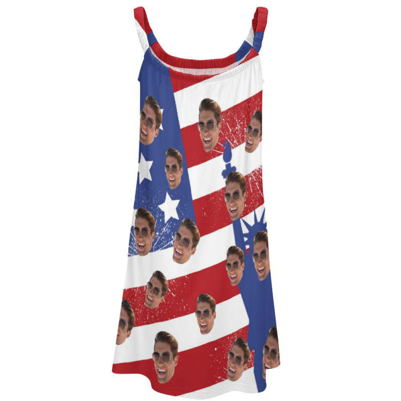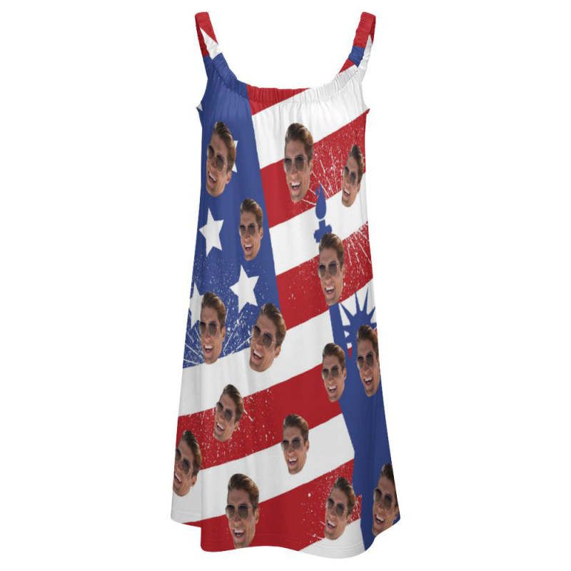 Custom Face Beach Sling Skirt Women Summer Long Skirt American Flag Sexy Seaside Vacation Dress