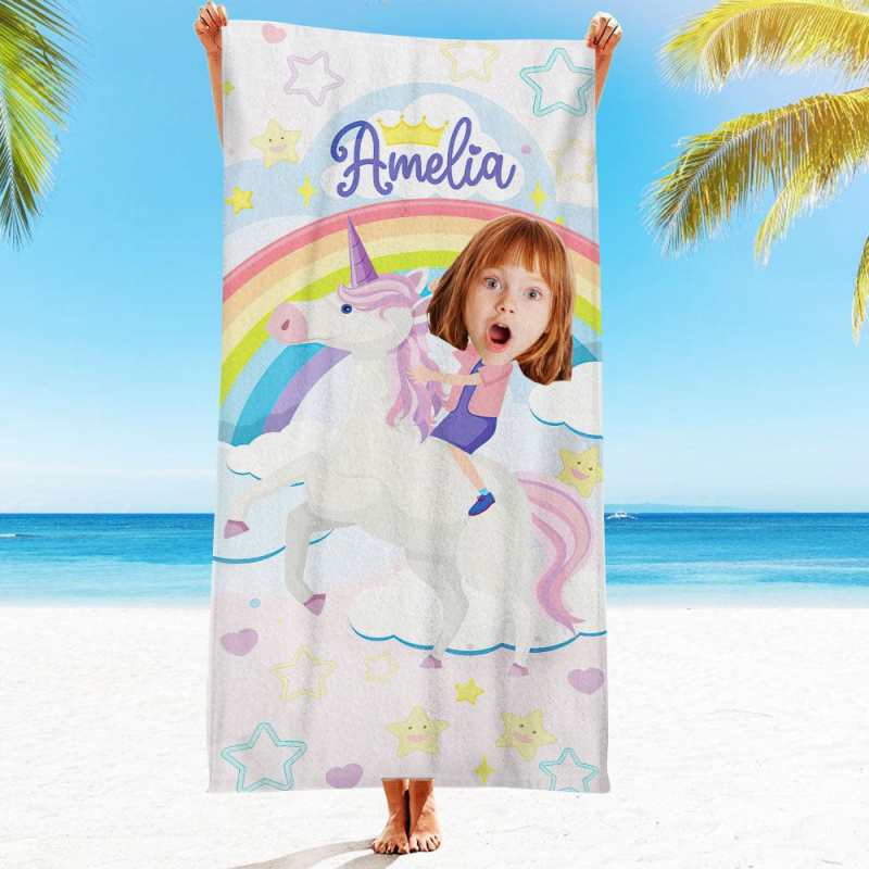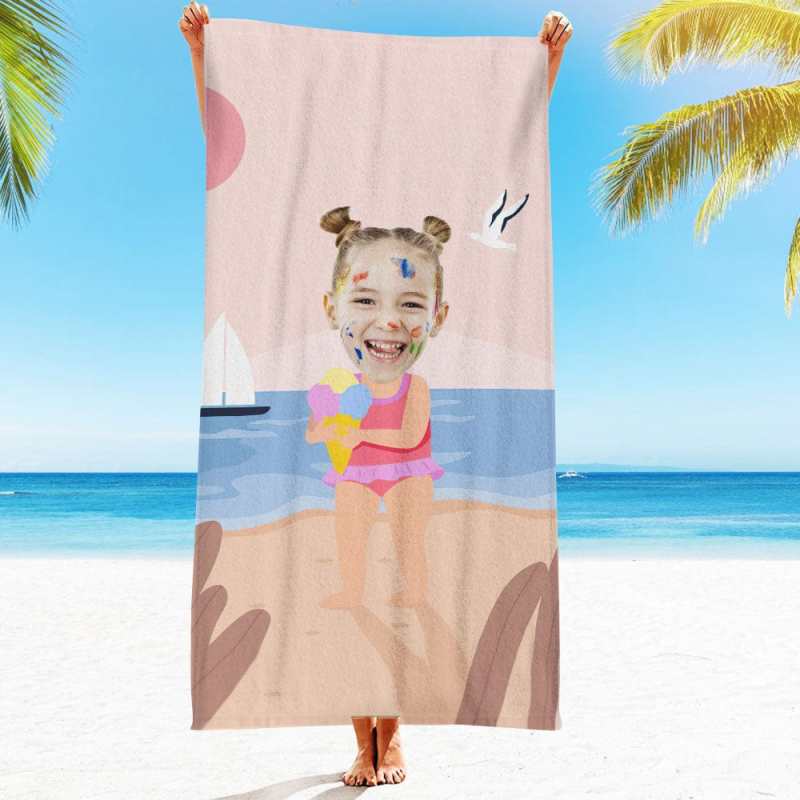 Custom Face Beach Towel Personalized Hawaii Style Beach Towel Funny Gift for Summer