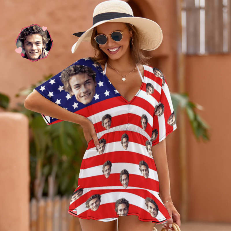 Custom Face Beach Wrap American Flag Sexy Beach Cover Ups