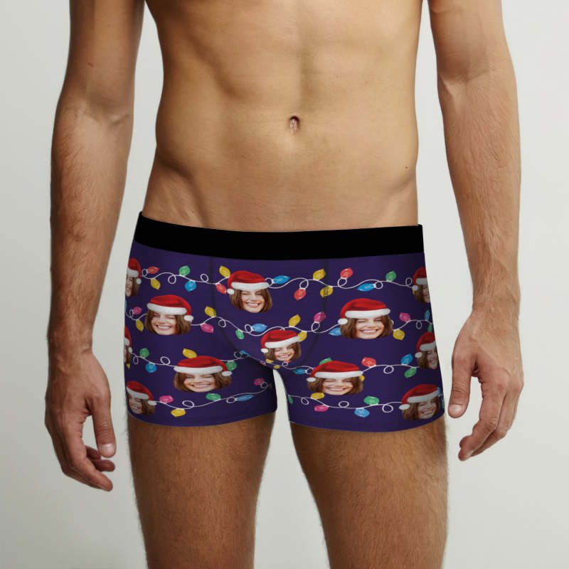 Custom Face Boxer Briefs Personalized Xmas Leds Underwear Christmas Gifts for Him