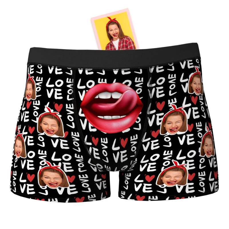 Custom Face Boxer Shorts Personalized Photo Boxer Shorts Valentine's Day Gifts - Mouth