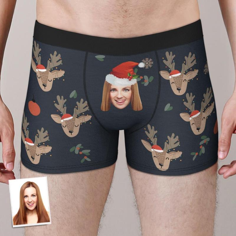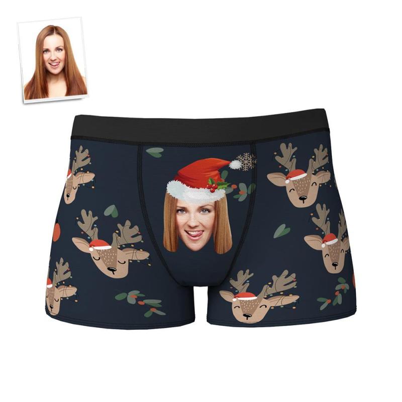 Custom Face Boxer Shorts Personalized Photo Boxer Shorts with Name Christmas Gift - Cute Elk