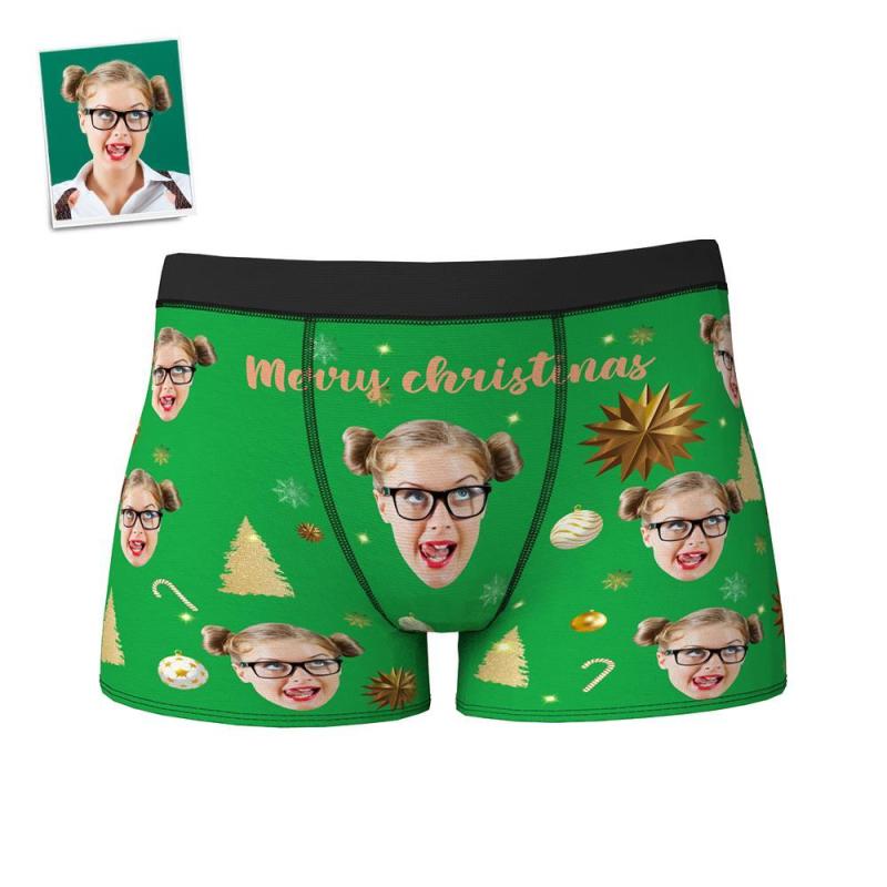 Custom Face Boxer Shorts Personalized Photo Boxer Shorts with Name Christmas Gift - Merry Christmas