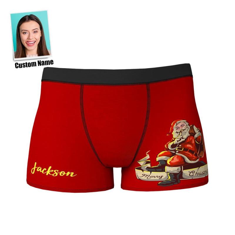 Custom Face Boxer Shorts Personalized Photo Boxer Shorts with Name Christmas Gift - Santa Claus