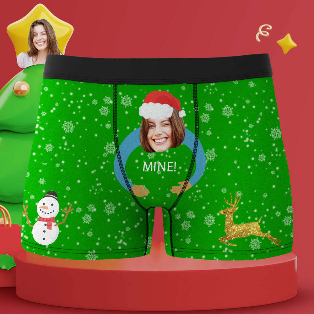 Custom Face Boxers Briefs Personalized Mens Underwear Funny Briefs Christmas Snowman and Elk