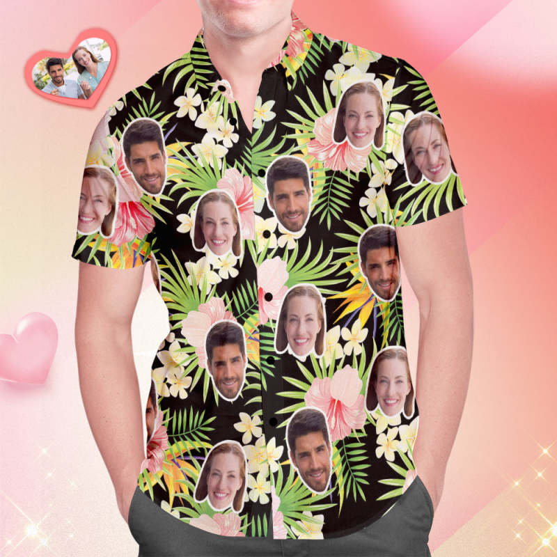 Custom Face Hawaiian Shirt All Over Print Men's Shirt Red Hibiscus