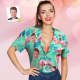 Custom Face Hawaiian Shirt Flamingo Tropical Shirt For Women ALL Over Printed Green and Palm Leaves