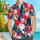 Custom Face Hawaiian Shirt Gradient Pink Flowers Beach Shirt Gift for Men