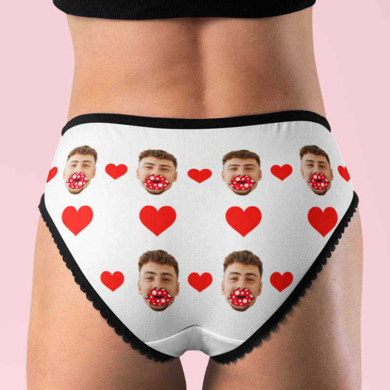Custom Face Heart Boxers Personalized Lips Thongs Valentine's Day Gift For Her