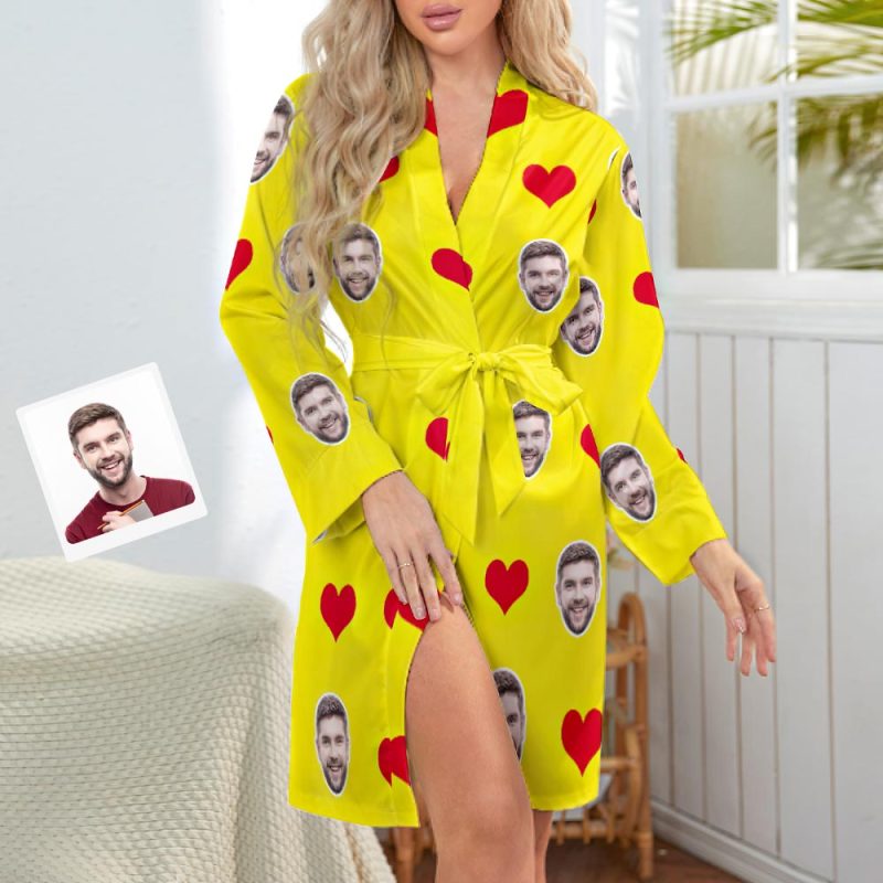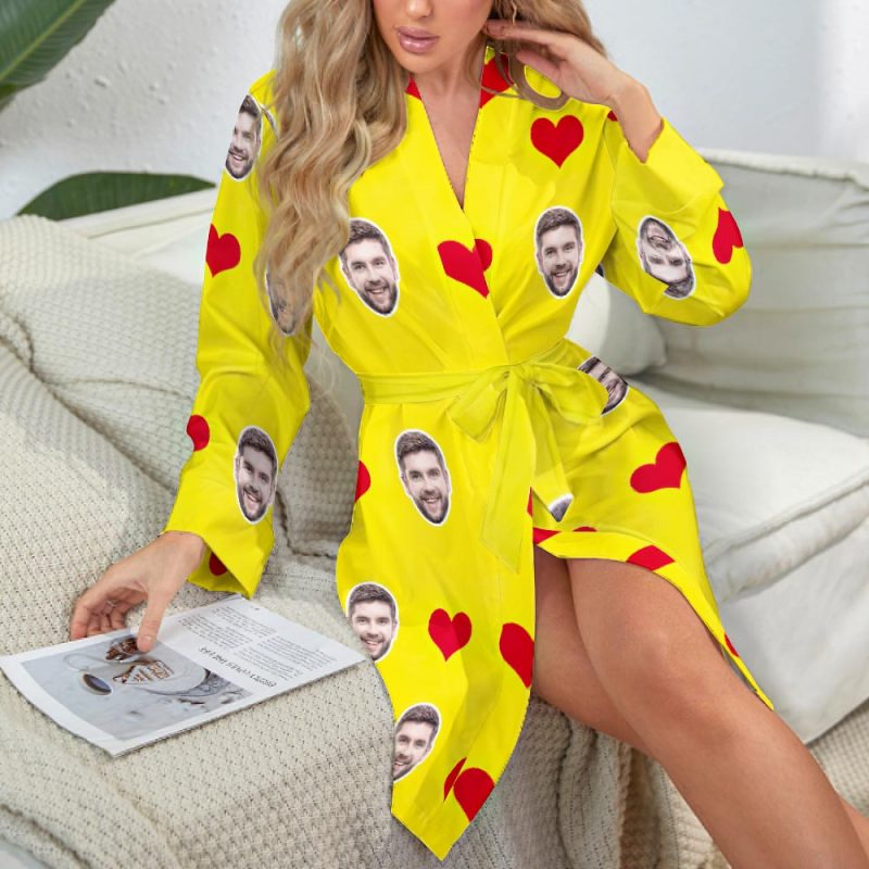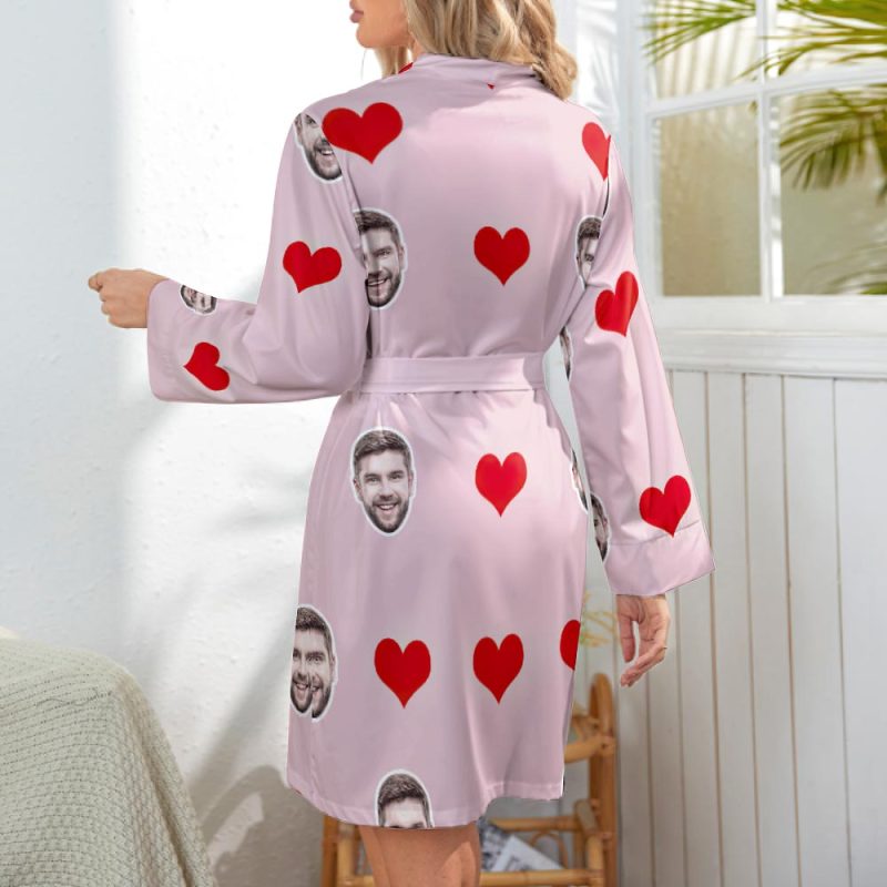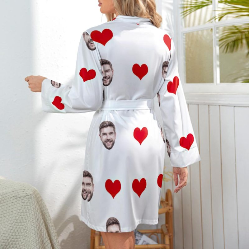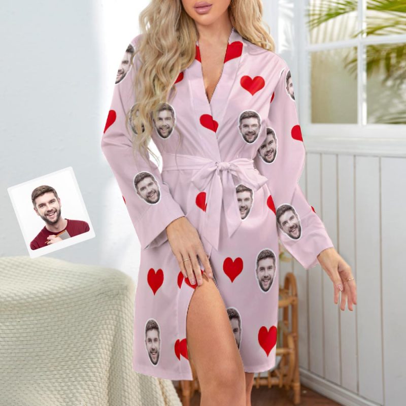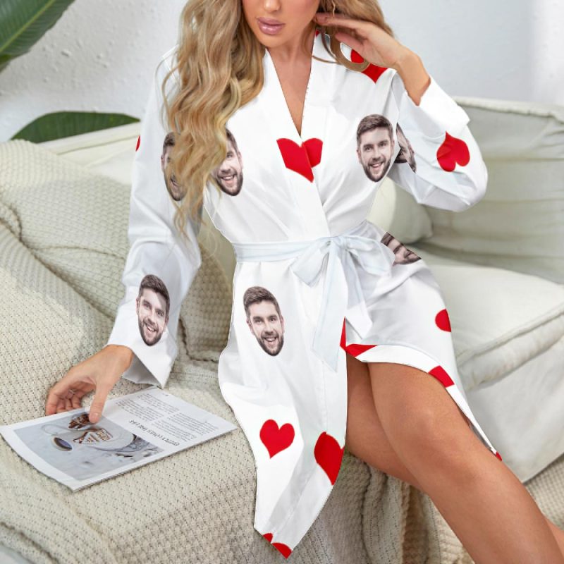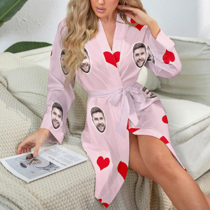 Custom Face Heart Long Sleeve Nightgown Valentine's Day Gifts For Her