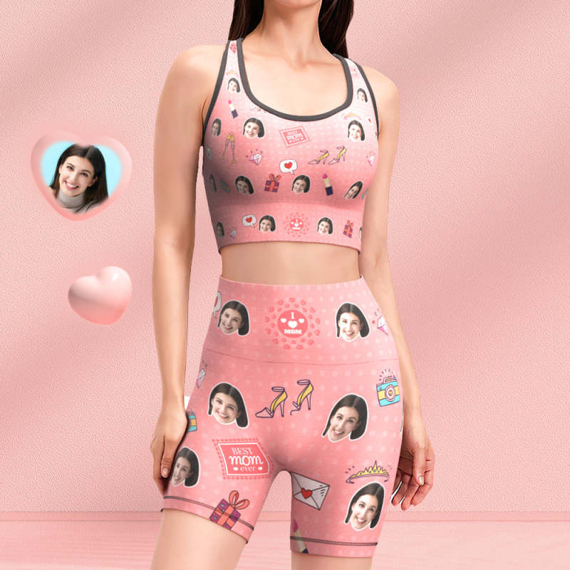 Custom Face Leggings and Tank Top Pink Yoga Clothing Suit Mother's Day Gift - Best Mom Ever