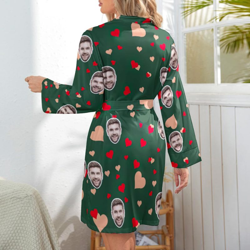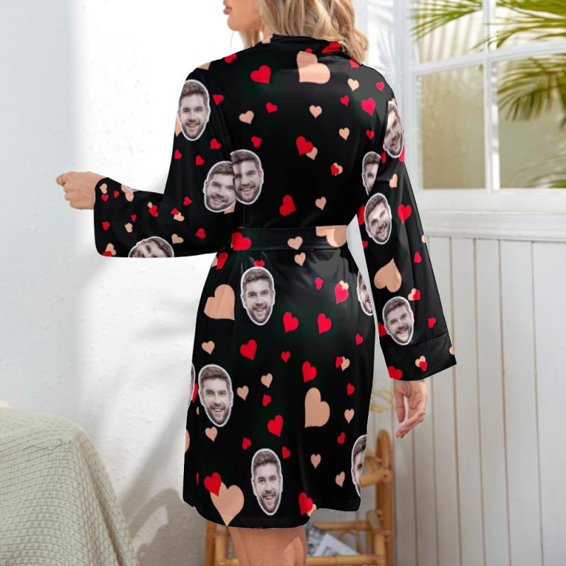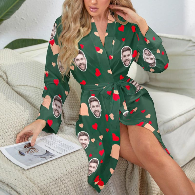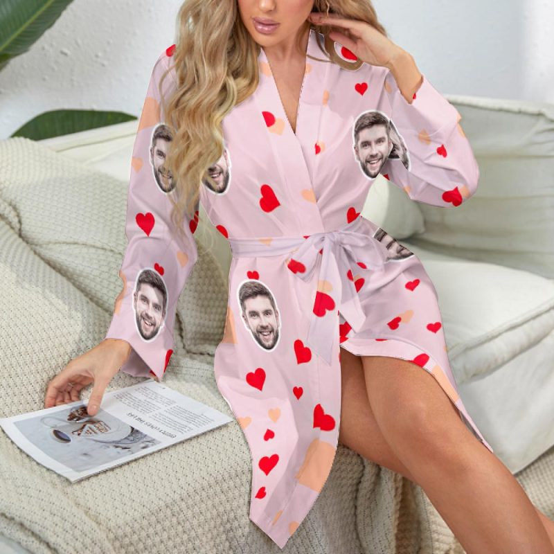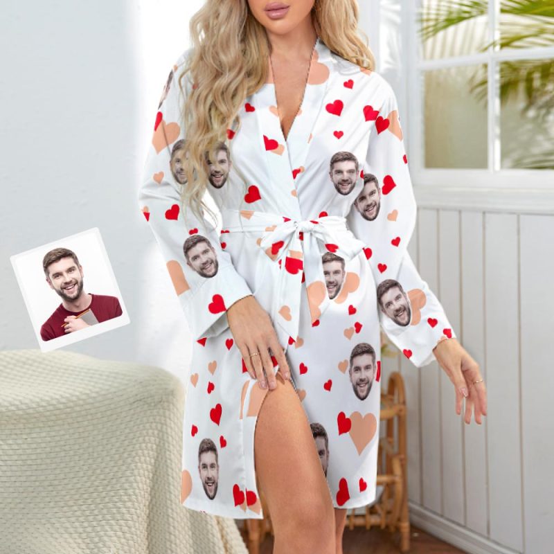 Custom Face Long Sleeved Nightgown Colorful Heart And Love