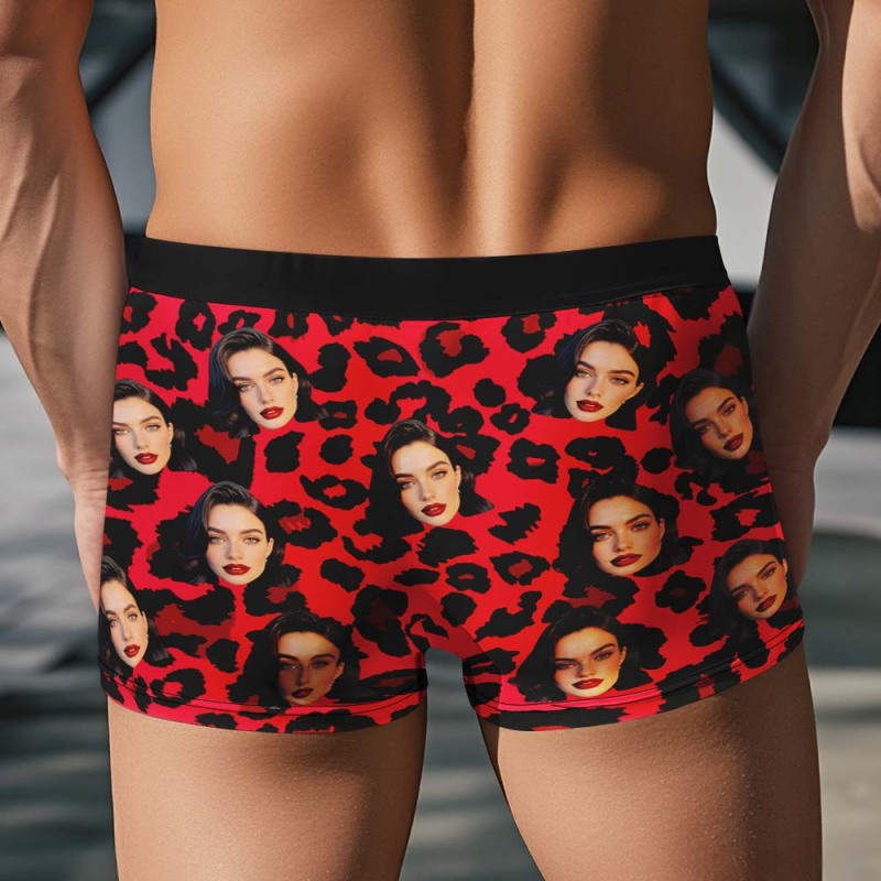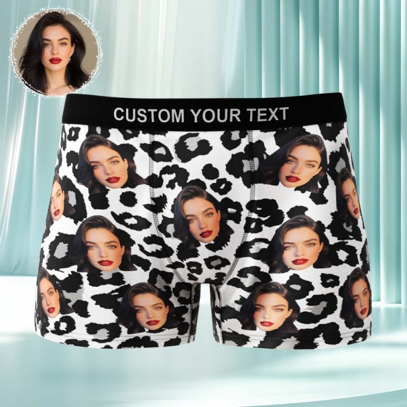 Custom Face Men's Boxer Briefs Personalized Photo Underwear Breathable Ice Silk Leopard Print