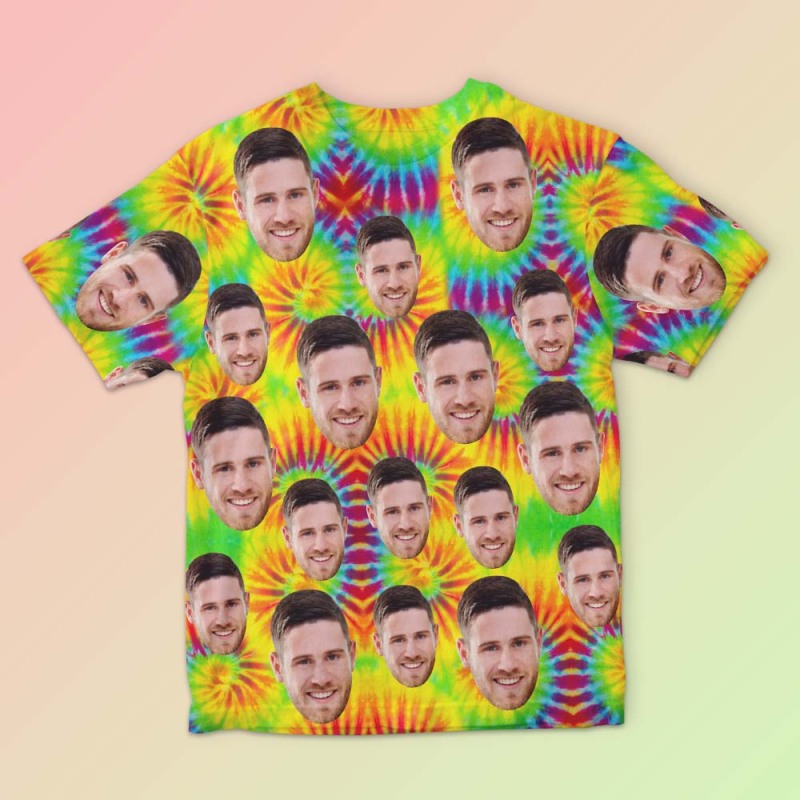 Custom Face Men's T-shirt Personalized Photo Funny Tie Dye T-shirt Gift For Men Colorful