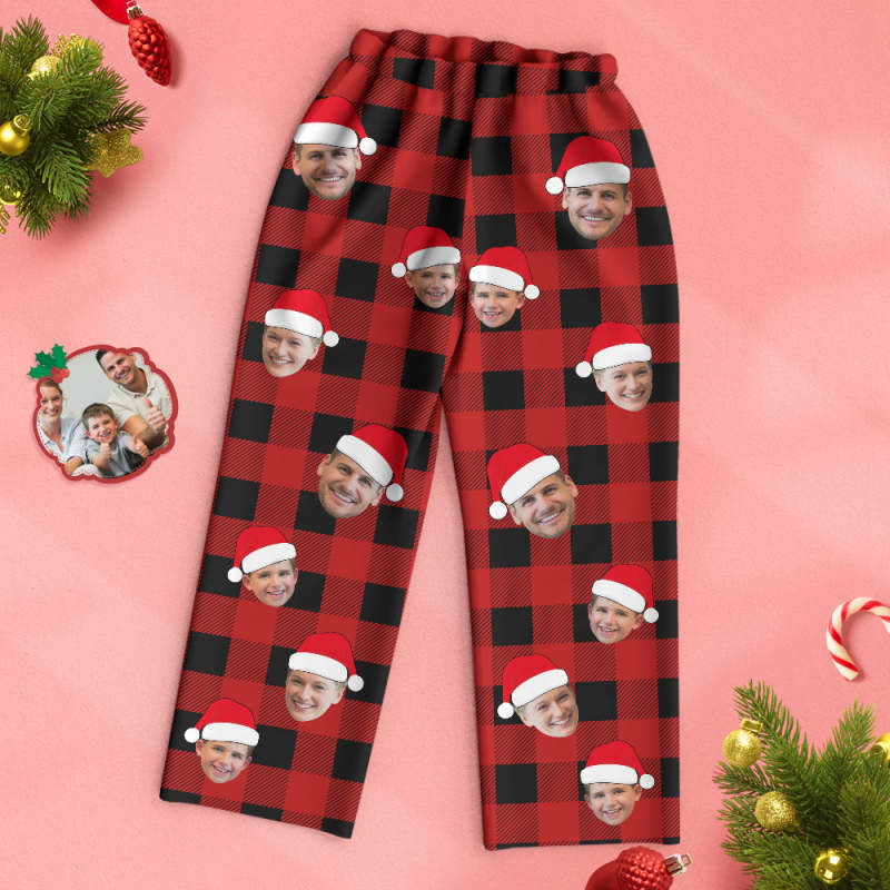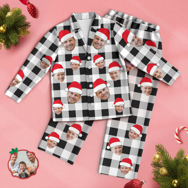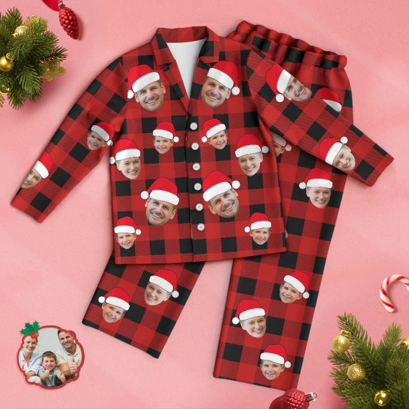 Custom Face Pajama Personalized Photo Christmas Family Buffalo Plaid Pajamas