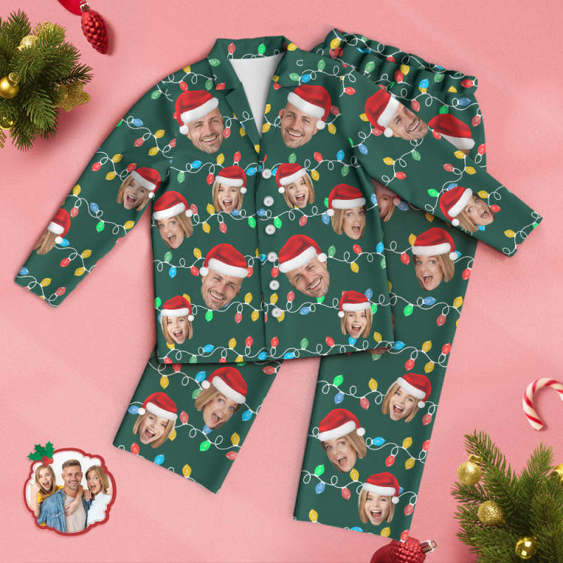 Custom Face Pajama Personalized Photo Christmas Family Xmas Leds Pajamas
