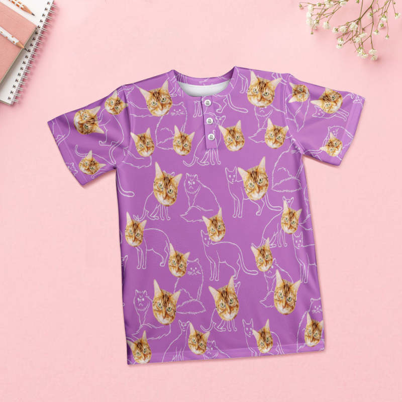 Custom Face Pajamas Cat Face Women Short Pajama Set Gift for Pet Lover