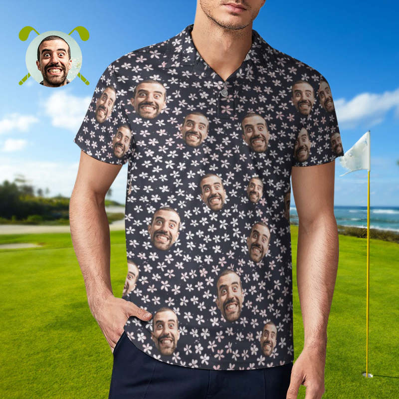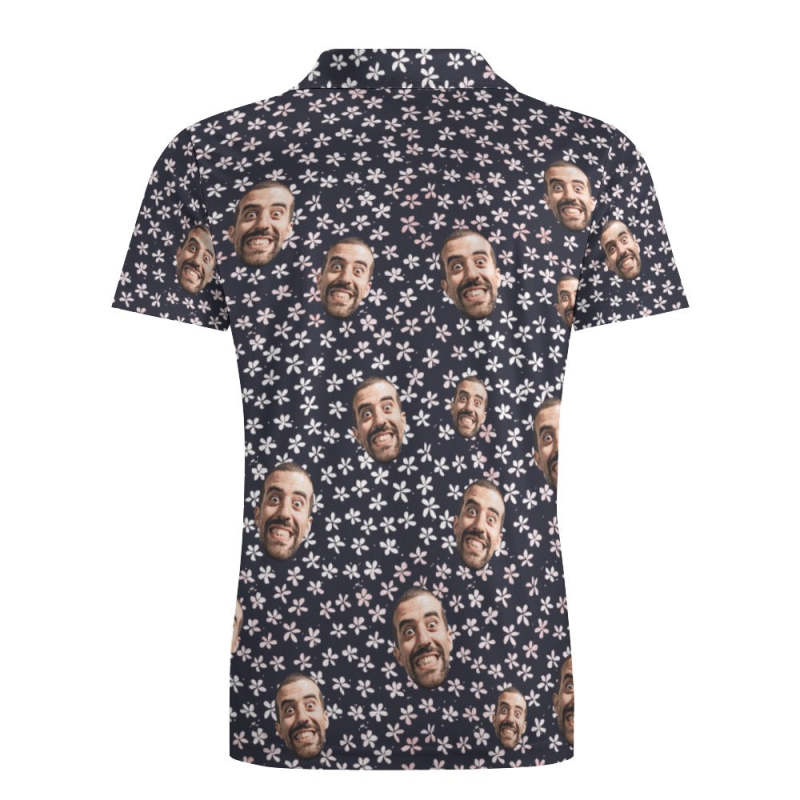 Custom Face Polo Shirt For Men Flowers Style Personalized Hawaiian Golf Shirts
