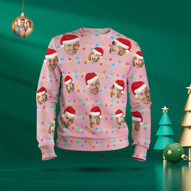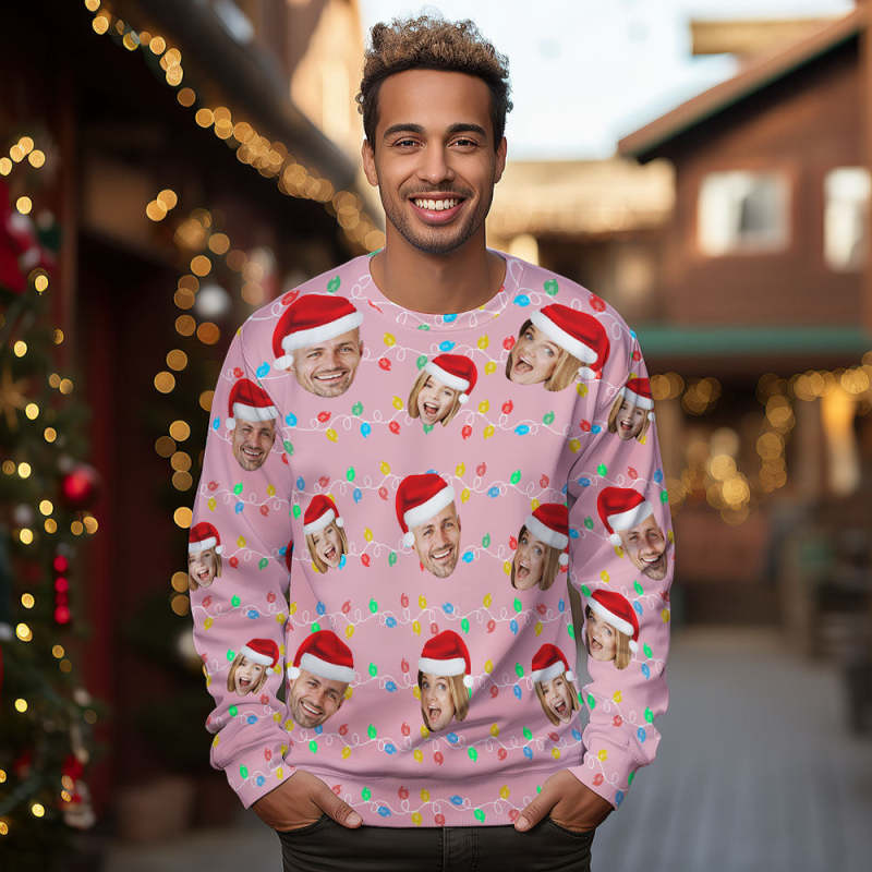 Custom Face Round Neck Hoodie Personalized Photo Christmas Family Xmas Leds Unisex Hoodies