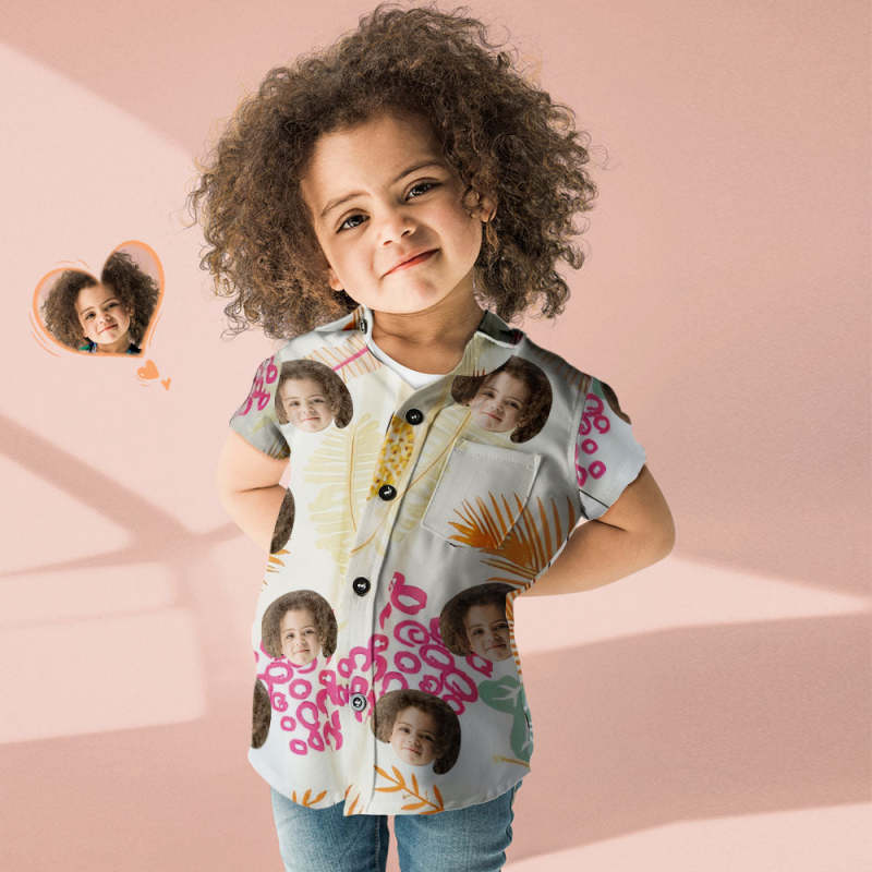 Custom Face Shirt Kid's Hawaiian Shirt Pineapples