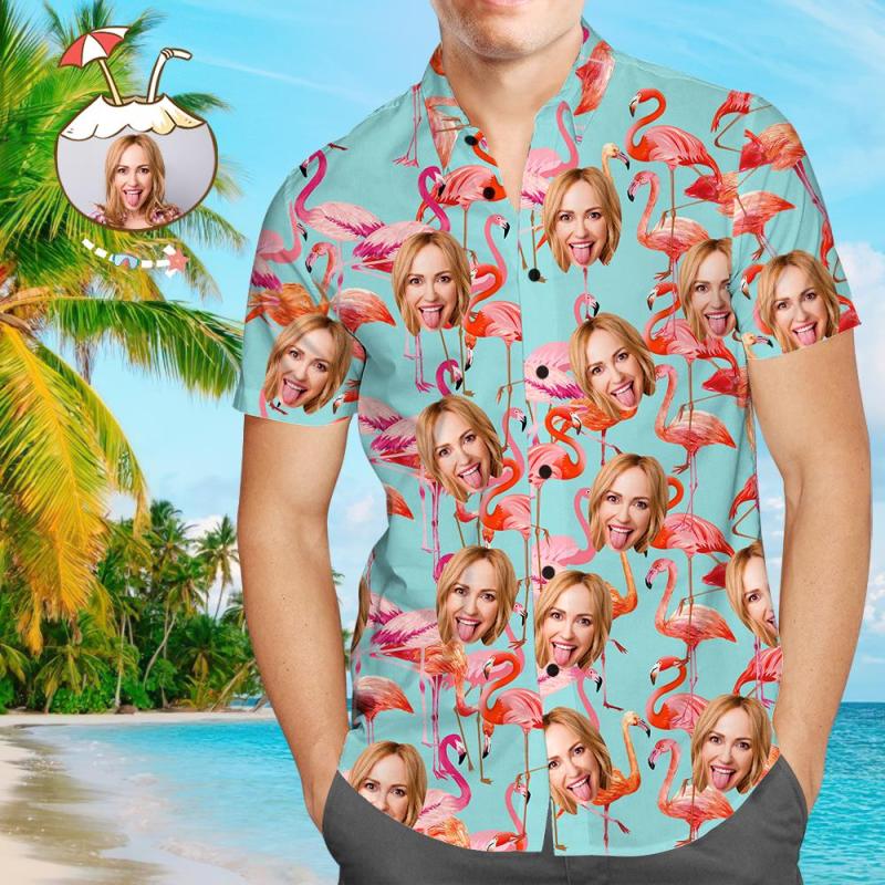 Custom Face Shirt Personalized Photo Men's Hawaiian Shirt Men's Hawaiian Shirt Flamingo