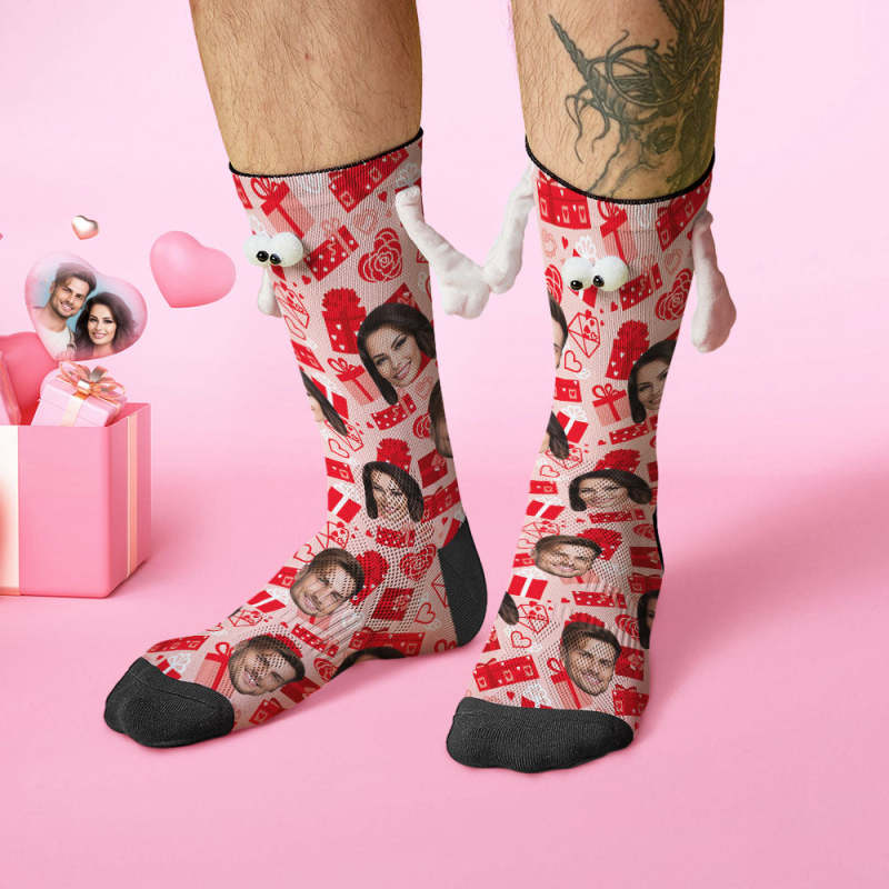 Custom Face Socks Funny Doll Mid Tube Red Socks Magnetic Holding Hands Socks Valentine's Day Gifts