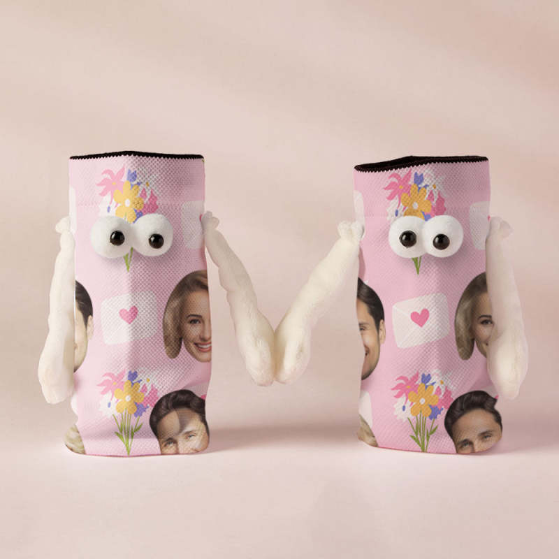Custom Face Socks Funny Doll Mid Tube Socks Magnetic Holding Hands Socks Flower Valentine's Day Gifts