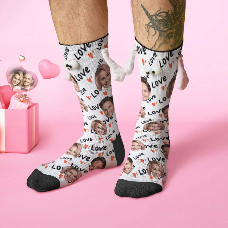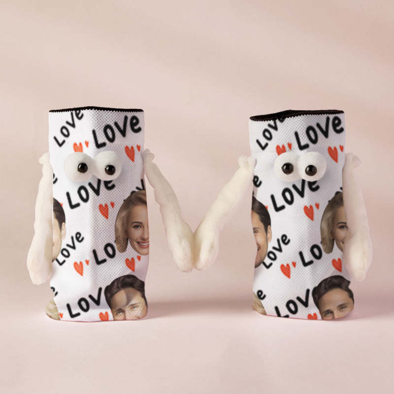 Custom Face Socks Funny Doll Mid Tube Socks Magnetic Holding Hands Socks Love Valentine's Day Gifts