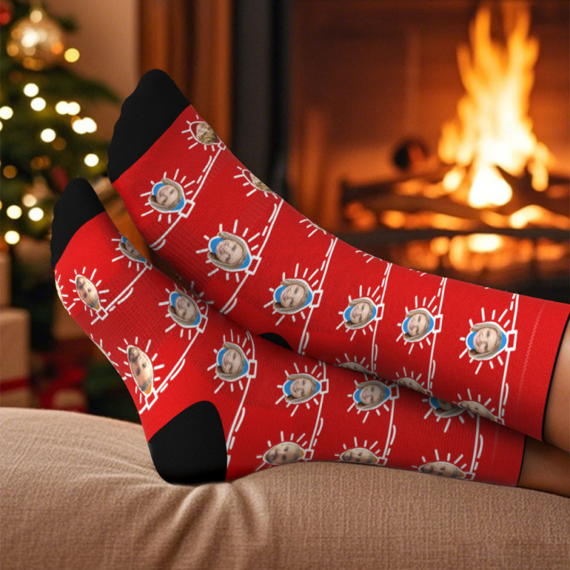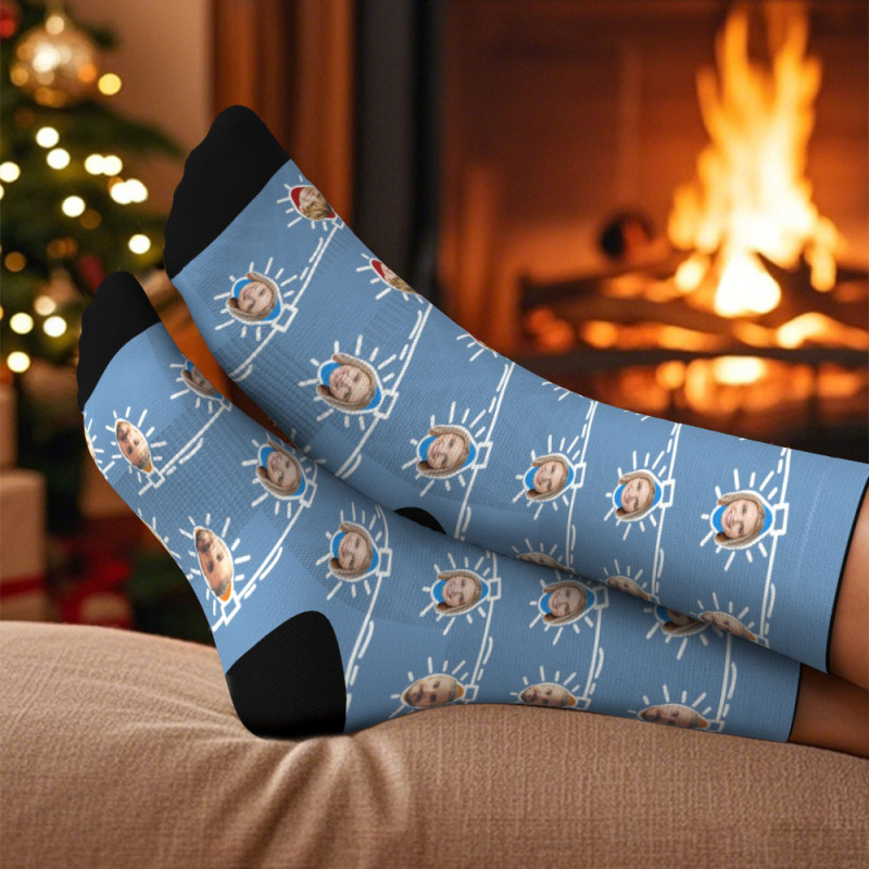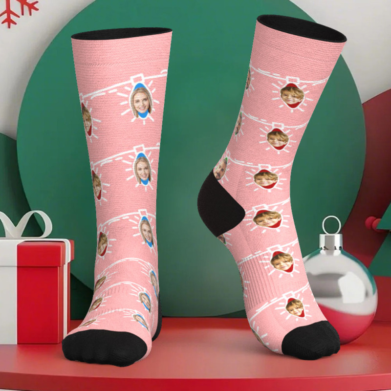 Custom Face Socks Personalized Christmas Lights Photo Socks Christmas Gift for Family