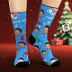 Custom Face Socks Personalized Photo Blue Socks Cartoon Santa Claus and Snowman