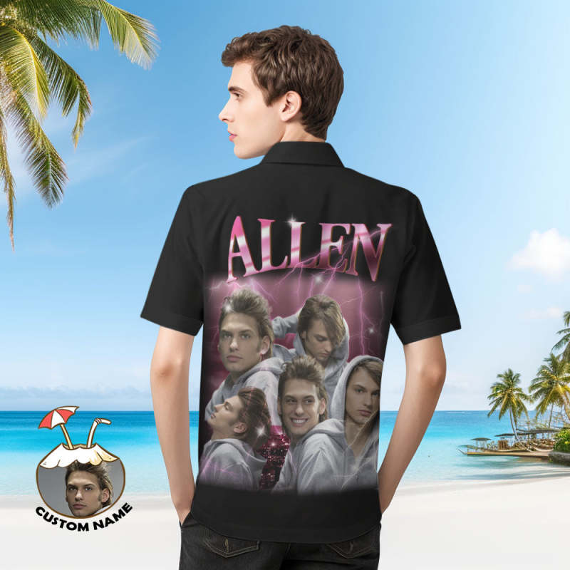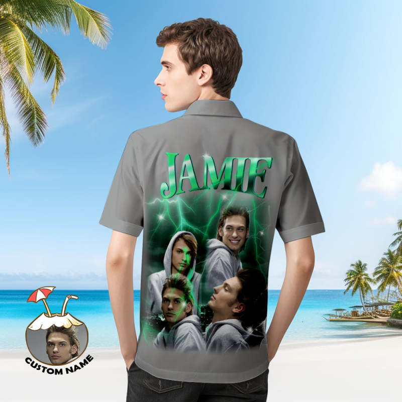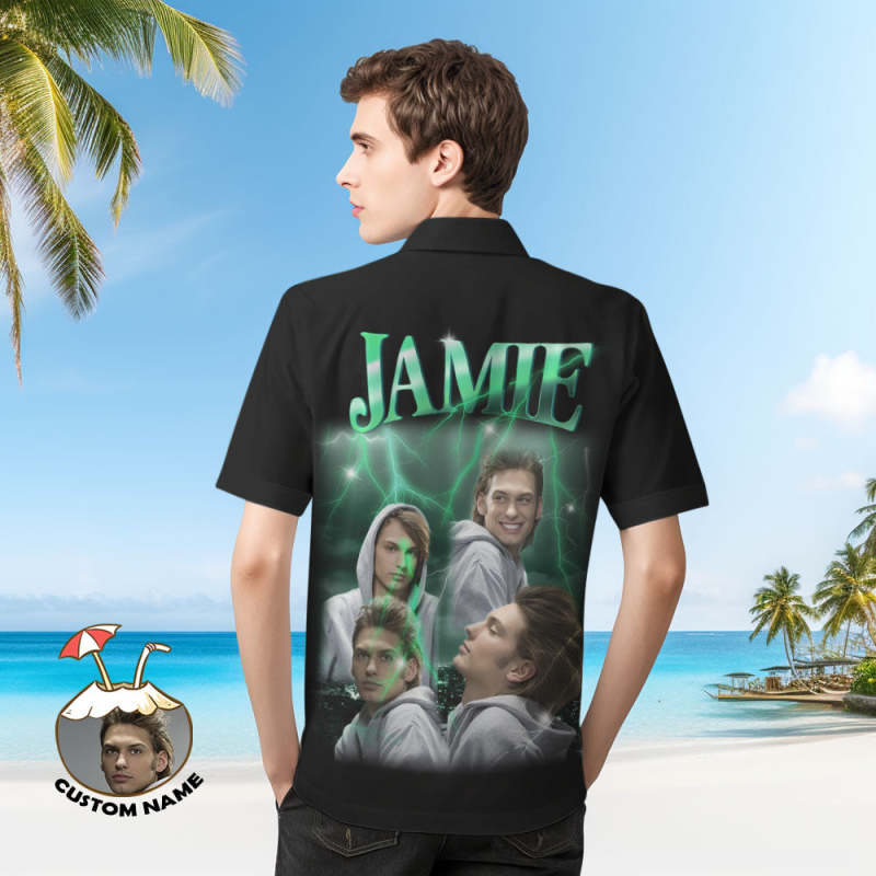 Custom Photo and Text Hawaiian Shirts Personalized Photo Gift Men's Vintage Personality Lightning Shirts