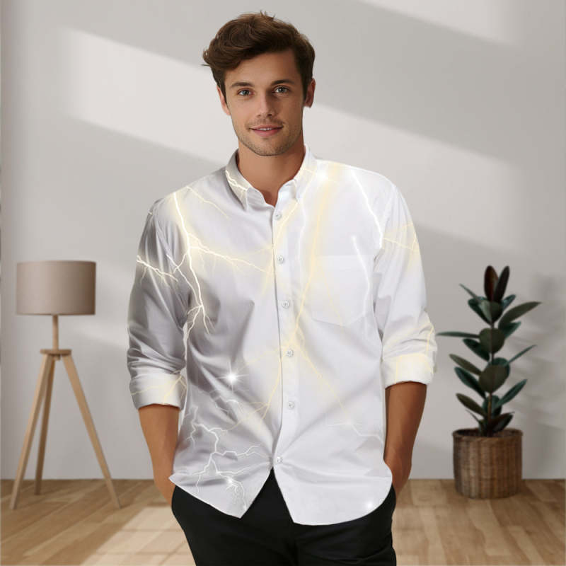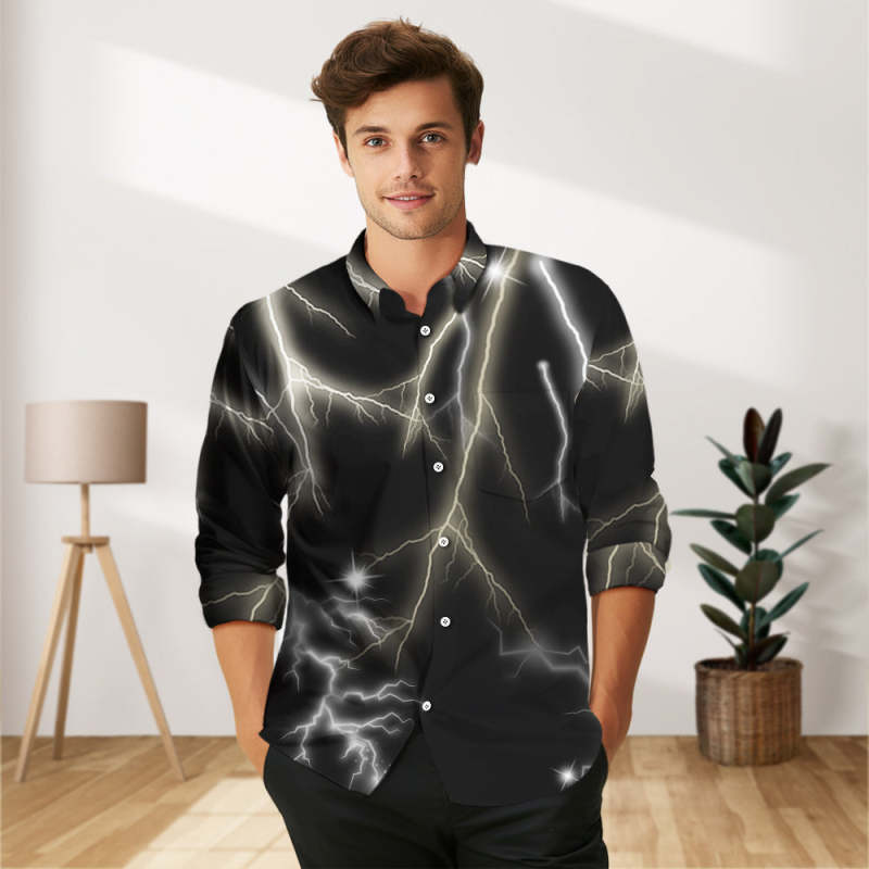 Custom Photo and Text Long Sleeve Shirts Personalized Photo Gift Men's Vintage Personality Lightning Shirts