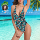 Custom Face V-Neck Bikini Women's Photo One Piece Swimsuit Women's Gifts - Coulorful Leaves
