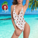 Custom Face V-Neck Bikini Women's Photo One Piece Swimsuit Women's Gifts - Feather