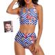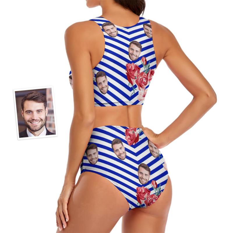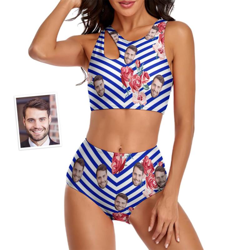 Custom Face Women's Stripe Two-piece Swimsuit Flowers