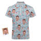 Custom Flamingo Blue Floral Men's Polo Shirt Personalized Face Funny Polo Shirt with Zipper