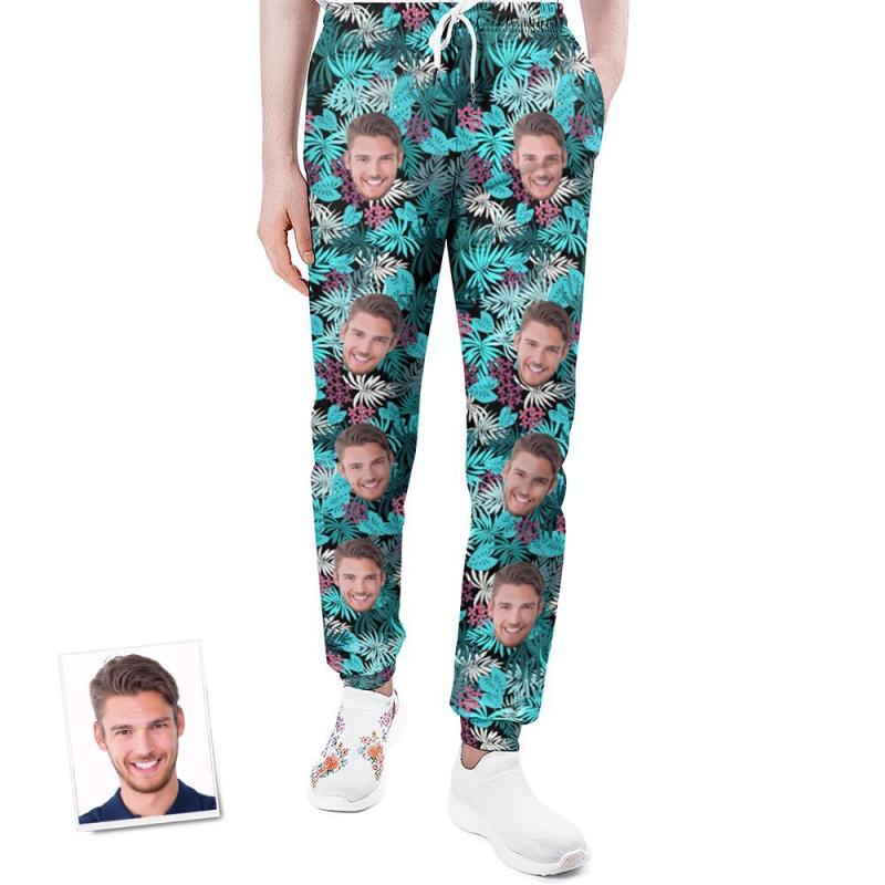 Custom Face Sweatpants Personalized Leaves Design Unisex Joggers